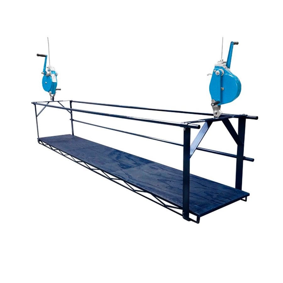Los Andamios colgantes o "Hamacas para trabajo en alturas" como se conocen comúnmente en la industria de la construcción, es una plataforma de 3.0m de longitudu izada a través de un sistema de Malacates manuales con 50 mts de cable por los cuales sube la hamaca, la baja y se mantiene estable a la altura deseada. Son ampliamente utilizadas en trabajos sobre las fachadas de edificios a gran altura.